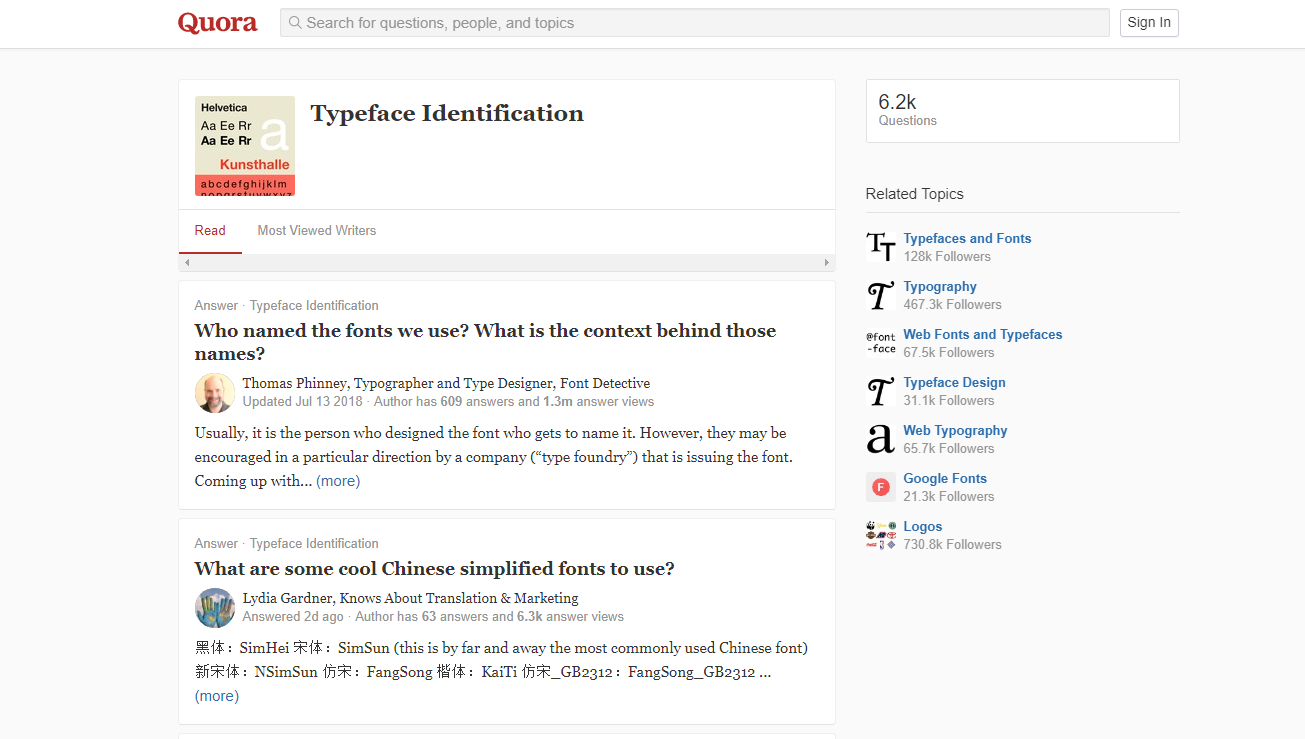 Muốn tìm được câu trả lời, hãy hỏi. Muốn tìm một công cụ hỏi tốt nhất, hãy nhớ đến Quora. Với việc sở hữu một danh mục dành riêng cho việc nhận dạng kiểu chữ, bạn hoàn toàn có thể khám phá và nhận câu trả lời từ những người yêu thích font chữ trên toàn thế giới.