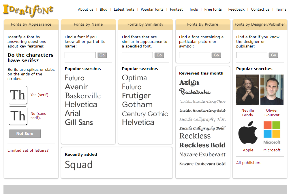 Khác với các công cụ còn lại được liệt kê trong danh sách này, nguyên tắc hoạt động của Identifont dựa trên việc xác định những thông tin cần thiết dựa vào việc đặt các câu hỏi xung quanh font chữ và tổng hợp các câu trả lời. Dựa vào đó, một danh sách các font chữ phù hợp và tương tự sẽ được tổng hợp dành cho bạn.