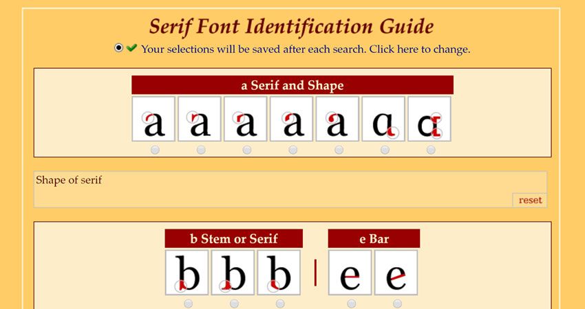 Công cụ này được sử dụng nhiều nếu như bạn đã xác định được font chữ bạn cần tìm thuộc họ Serif. Serif Font Identification Guide chỉ tập trung vào font chữ serif và giúp bạn tìm ra font chữ được sử dụng qua một số câu hỏi.