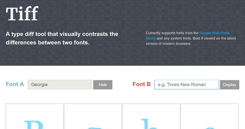 Tiff cho phép bạn thu hẹp lựa chọn font chữ bằng cách phân biệt chúng. Tiff đưa ra những so sánh trực quan giữa các font chữ khác nhau, từ đó giúp bạn có những gợi ý cho font chữ phù hợp nhất với dự án của mình.