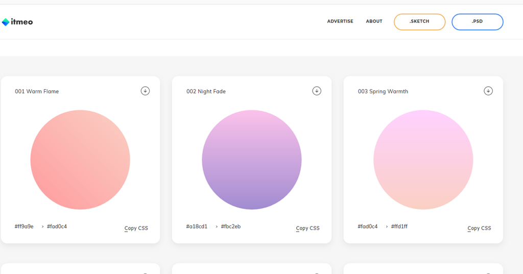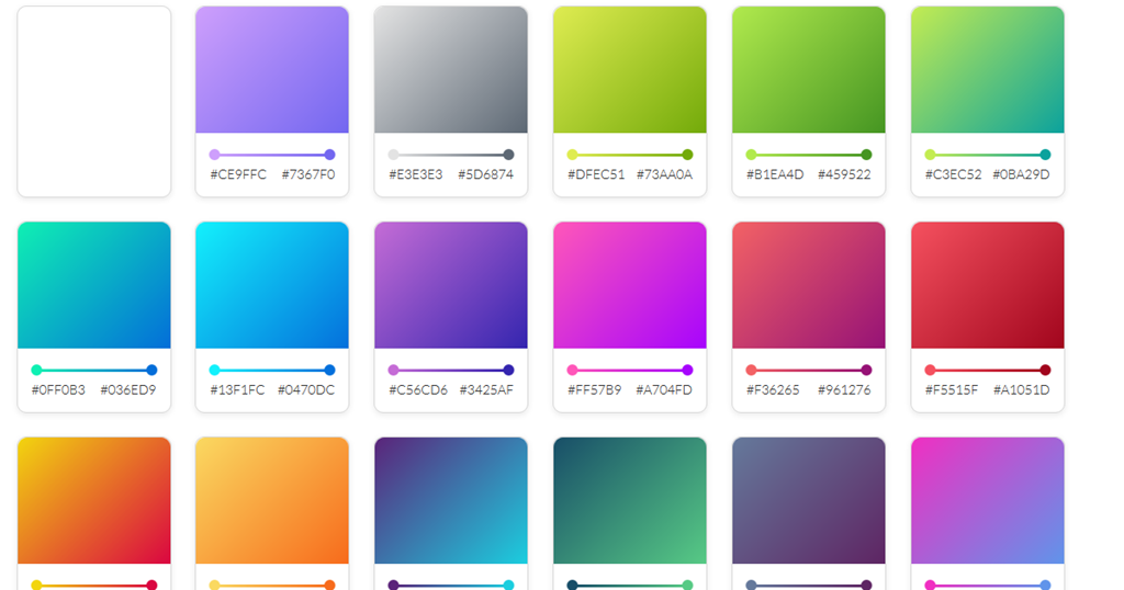 Đây là một bộ những gradient với chuyển động hover đi kèm cho những dự án UI. Chỉ mất 2 lần click để có mã Css với thứ mà bạn chọn. Nếu bạn định dùng gradient cho UI của mình thì đừng chần chừ bookmark trang web này lại nhé.