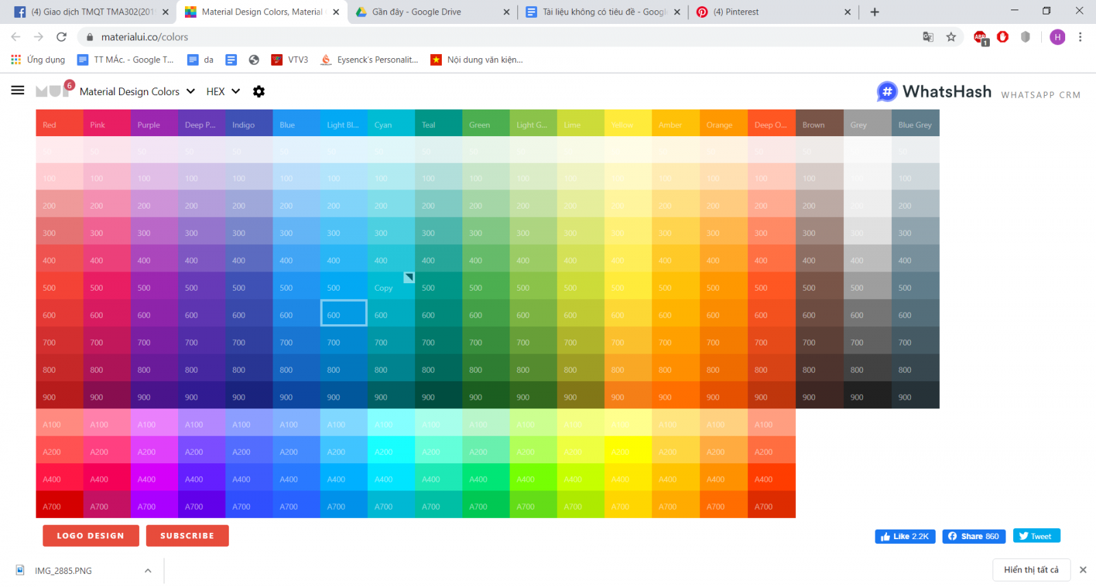 Hãy truy cập vào trang web https://www.materialui.co/colors để lấy màu mà bạn yêu thích. Các màu có mức độ đậm nhạt khác nhau kèm theo các mã màu nên bạn có thể dễ dàng copy về để sử dụng đấy.