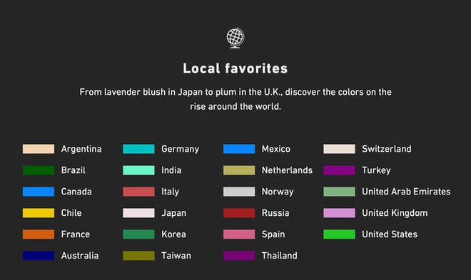 Lou Weiss, Giám đốc Tiếp thị của Shuttestock cho biết: "Công nghệ đang ngày càng ảnh hưởng đến nhiều khía cạnh văn hóa, trong đó có sự yêu mến của đại chúng dành cho sắc màu. Không ngạc nhiên khi 3 màu sắc gây thích thú nhất trong thời gian tới đều rất hiện đại, đậm chất digital".