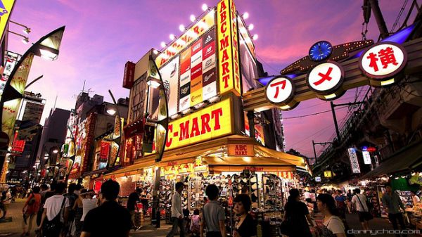 Chợ Ameyoko buôn bán đa dạng, phong phú các loại mặt hàng. Với diện tích hơn 15,000 m2 ngay sau tòa nhà Yodobashi Camera và theo đường Yamanote , Ameyoko có tới hơn 180 cửa hàng bán từ thực phẩm cho đến đồ dụng. Đây được xem là một trong những khu thương mại phổ biến nhất ở Tokyo.