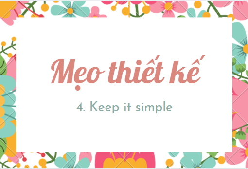 Mẹo cuối cùng dành cho bạn đó là "keep it simple" bởi sự đơn giản mà hiệu quả chính là đỉnh cao của thiết kế. Tuy nhiên để đạt được điều này thì bạn cần tối ưu hoá mọi chi tiết thiết kế từ hình ảnh, màu sắc đến font chữ, khoảng cách nhé