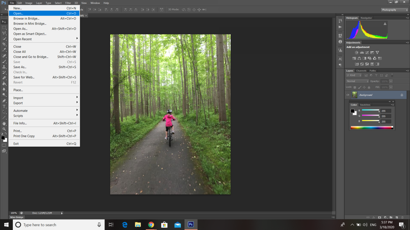 Tất nhiên rồi, bước đầu tiên để bạn có thể edit một bức ảnh trên Photoshop chính là mở file đó lên. Chọn FILE => OPEN hoặc ấn tổ hợp phím tắt Ctrl + O sau đó pick tấm hình cần chỉnh sửa. Vậy là đã xong bước 1 rồi đấy!