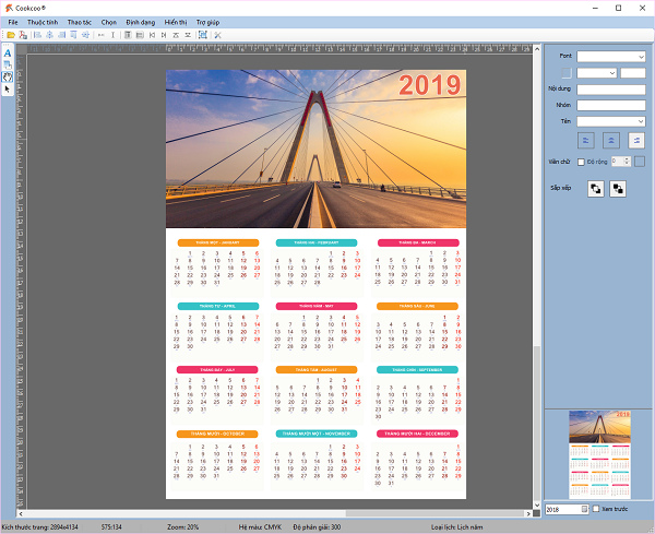 Phần mềm thiết kế lịch Cookcoo được sử dụng bằng tiếng Việt dành riêng cho thị trường thiết kế lịch trong nước. Điểm cộng lớn nhất của phần mềm này là có các tools giúp làm lịch âm, một phần không thể thiếu với các quốc gia Châu Á. Đặc biệt, Cookcoo còn được dùng để thiết kế nhiều loại lịch khác nhau như lịch treo tường hay lịch để bàn.