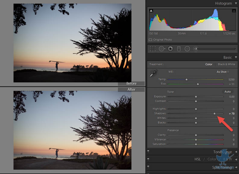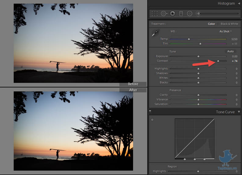 Tính năng này ngược lại với Highlight giúp điều chỉnh độ sáng của vùng tối. Lưu ý là bạn phải tăng Shadow thì độ sáng của vùng tối mới tăng chứ không phải giảm shadow nhé