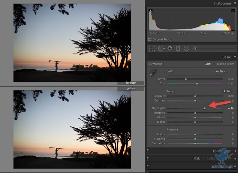 Tính năng năng điều chỉnh độ sáng của vùng sáng. Bạn tăng hightlight lên thì độ sáng của chỉ vùng sáng sẽ tăng lên