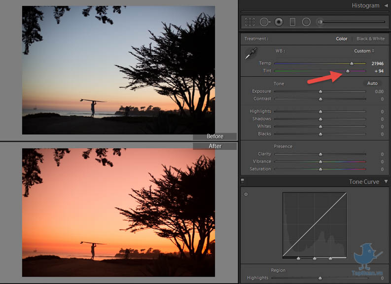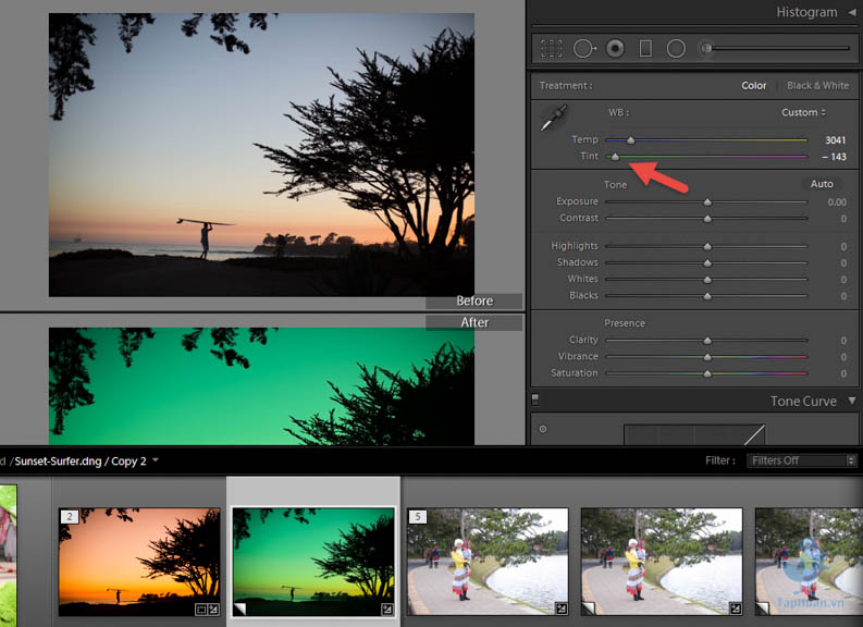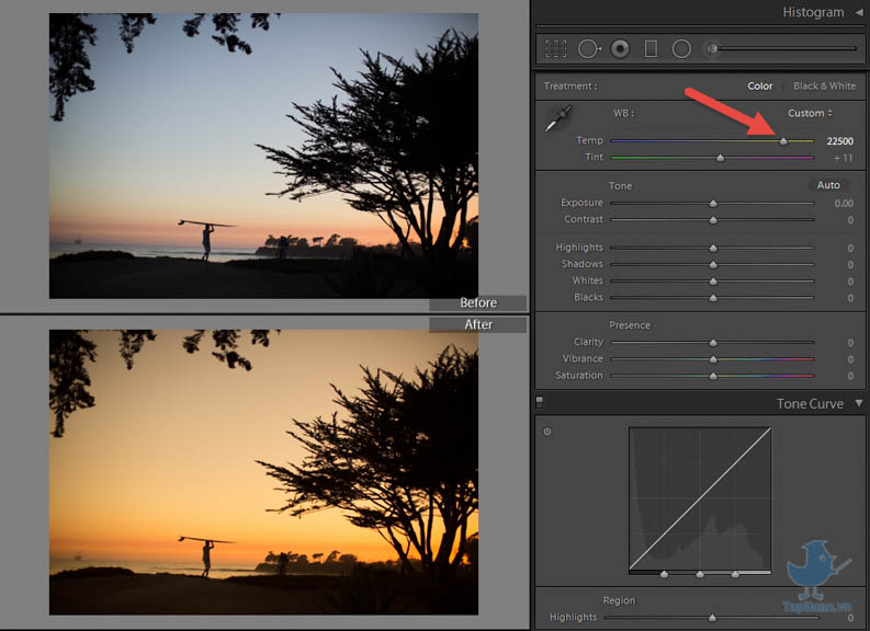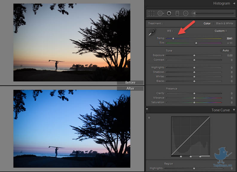 - Temp: chỉnh ảnh theo tone ấm (vàng) hay tone lạnh (xanh)