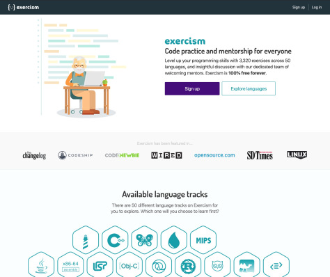 Giống với 3 trang web kể trên, Exercism là một trang có rất nhiều bài tập. Tuy nhiên, nó lại không quá nặng nề về mặt thuật toán, lý thuyết. Trang chủ yếu luyện cho bạn cách dùng ngôn ngữ lập trình ví dụ như: sử dụng if/else, loop, xử lý ngày tháng, xử lý chuỗi; cách phân tách method, tổ chức class; cách xử lý lỗi, viết code bất đồng bộ;...