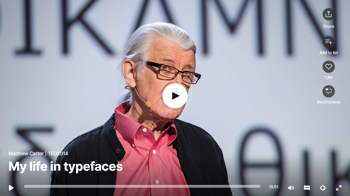 Link Vietsub:https://www.ted.com/talks/matthew_carter_my_life_in_typefaces?language=en
