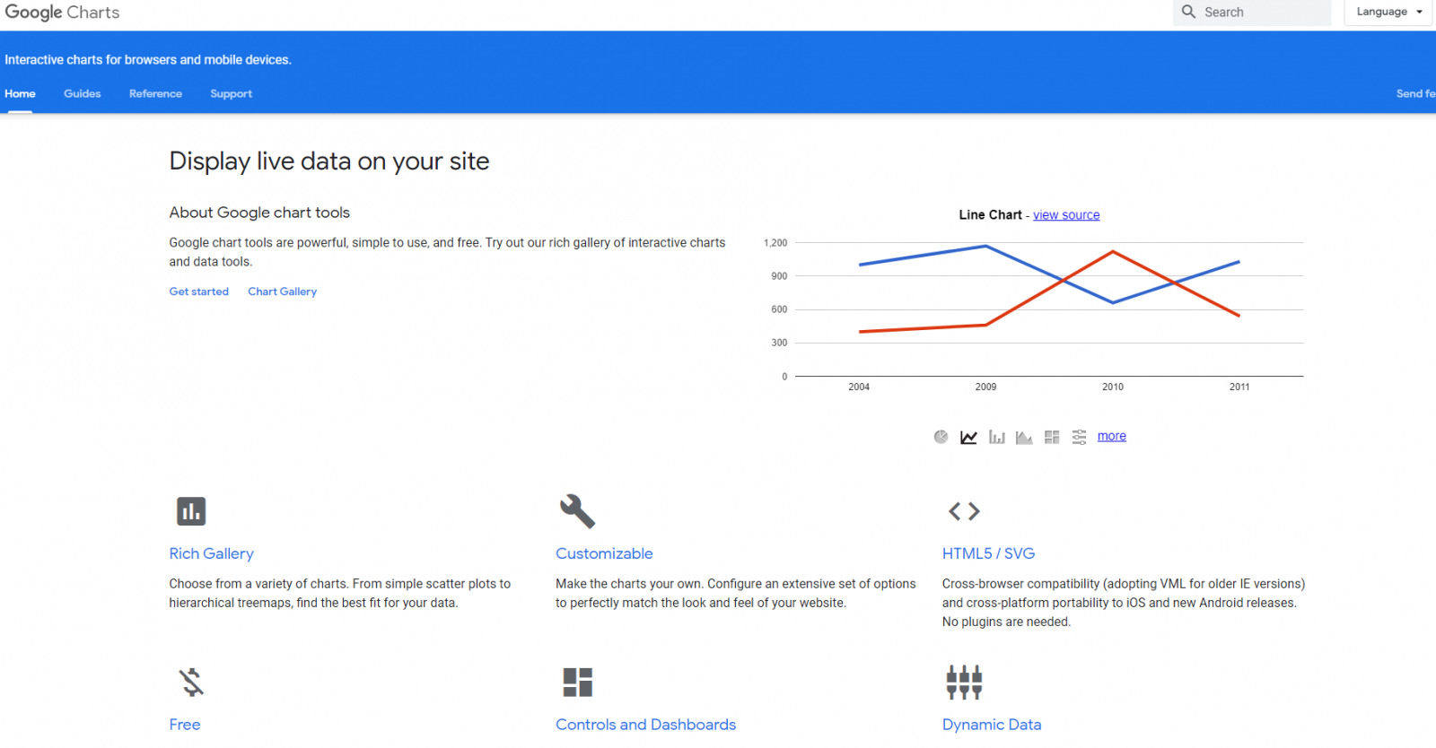 Điểm mạnh của website này nằm ở công cụ biểu đồ, quan trọng là nó rất dễ dử dụng và hoàn toàn miễn phí. Bạn có thể lấy dữ liệu từ nhiều nguồn và thiết lập tùy chọn hiển thị để phù hợp với nhiều loại thiết bị khác nhau. Google Charts sẽ kết nối dữ liệu, xử lí dữ liệu theo thời gian thực để tạo và hiển thị kết quả khảo sát của bạn một cách khoa học và hoàn hảo nhất.