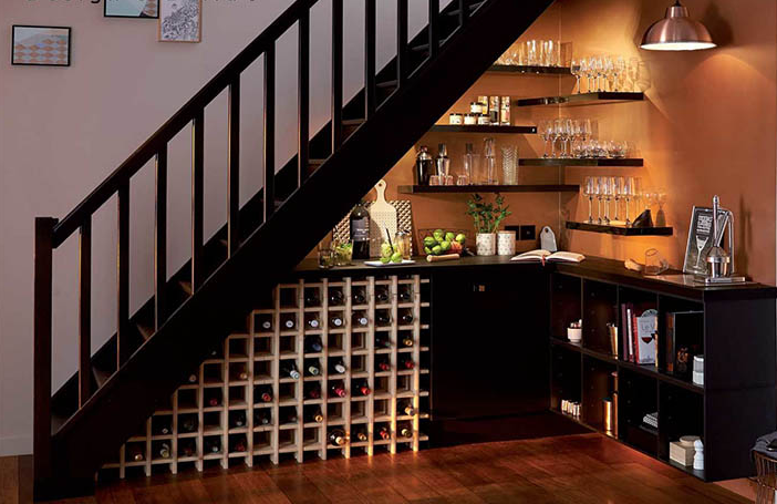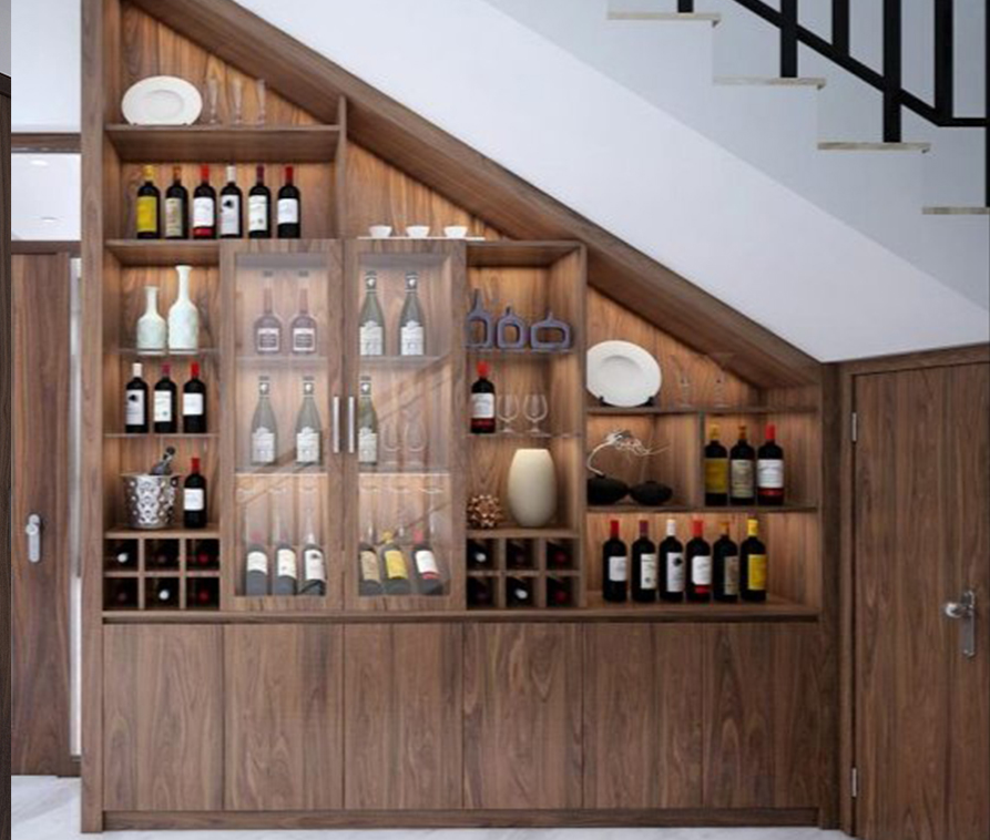 Nhiều gia đình tại Việt Nam thường trưng bày rượu ở các tủ kính riêng trong phòng khách. Nhưng nếu như bạn cảm thấy việc này gây mất diện tích thì hoàn toàn có thể chuyển tủ rượu vào không gian dưới gầm cầu thang. Bạn có thể tham khảo ảnh dưới đây để có ý tưởng cho thiết kế của mình nhé!