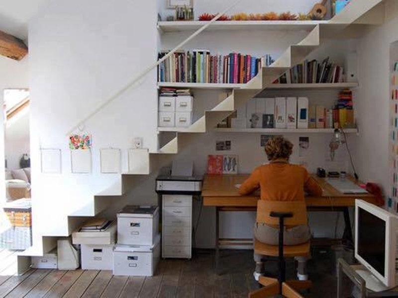 Tùy theo thiết kế cầu thang, nếu đủ cao bạn hoàn toàn có thể tạo một không gian đọc sách bằng cách đặt chiếc bàn học vừa vặn ngay dưới gầm cầu thang. Ý tưởng này vô cùng mới mẻ và đầy phong cách, giúp tiết kiệm diện tích và tối giản hóa không gian của bạn.