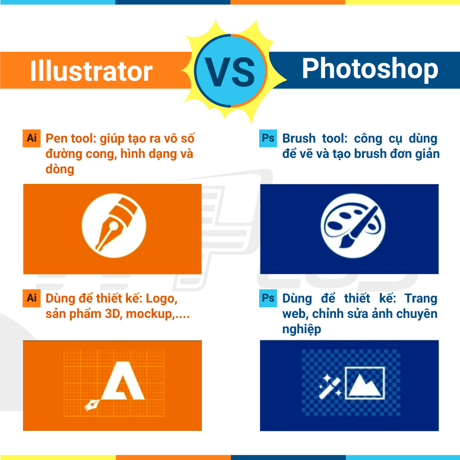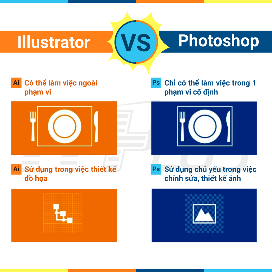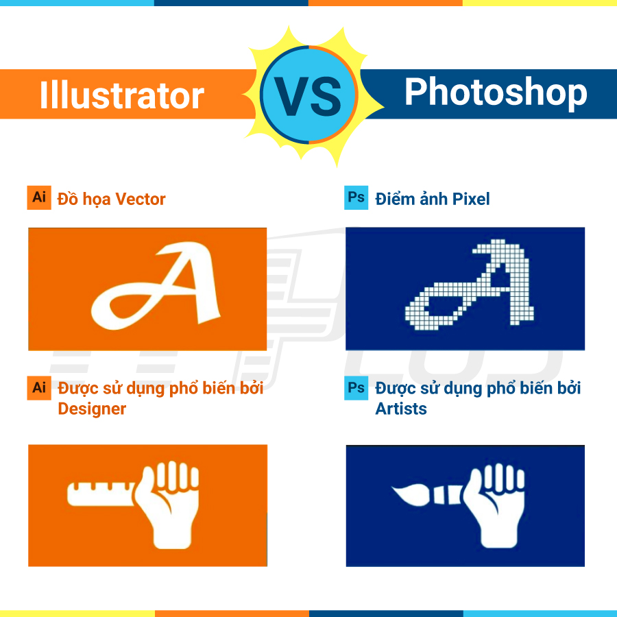Bạn mới tìm hiểu về thiết kế đồ họa, bạn thấy có rất nhiều phần mềm được dùng trong công nghiệp thiết kế, đôi khi bạn hoang mang không biết nên học cách sử dụng phần mềm đồ họa nào. Hai phần mềm đồ họa phổ biến nhất tại Việt Nam là Adobe illustrator va Photoshop. Bài viết này sẽ đưa ra đánh giá và so sánh của mình về 2 phần mềm thiết kế đồ họa chuyên nghiệp hàng đầu này.