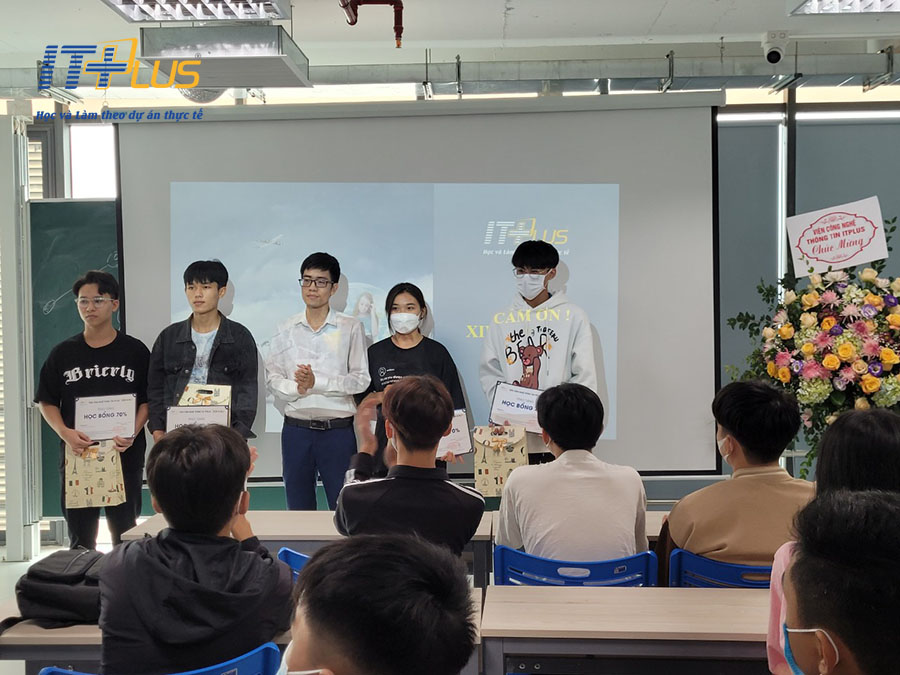 Trong buổi gặp gỡ. Itplus trao tặng các xuất học bổng và phần quà cho 10 sinh viên có thành tích đầu vào cao nhất và 10 sinh viên có hoàn cảnh khó khăn có thành tích đầu vào cao.