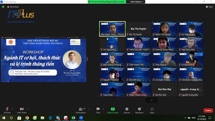 Vừa qua, Viện Công nghệ thông tin ITPlus đã phối hợp tổ chức workshop “Ngành IT cơ hội, thách thức và lộ trình thăng tiến” cùng Học viên Mật mã
