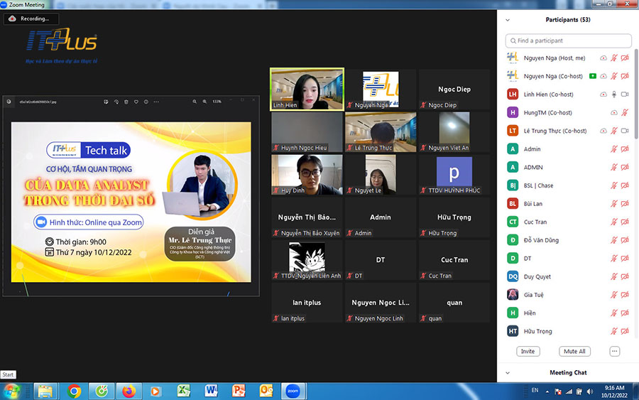Với lượng thông tin ngày càng lớn trong thời đại công nghệ như hiện nay, việc đọc các báo cáo, khảo sát ở dạng dữ liệu thô (con số, văn bản) sẽ vô cùng phức tạp, tốn nhiều thời gian nhưng kém hiệu quả. Điều này buộc doanh nghiệp phải xử lý, sàng lọc và trực quan các dữ liệu thô thành những biểu đồ, bản đồ, đồ thị mới có được cái nhìn bao quát nhất và người làm công việc này được gọi là Data Analyst. Nắm bắt được nhu cầu này Viện Công nghệ thông tin ITPlus tổ chức chương trình Tech Talk (Online) "Cơ hội, tầm quan trọng của Data Analyst trong thời đại số" vào lúc: 9h00 - 11h30 Sáng thứ Bảy ngày 10/12/2022 với sự góp mặt của: