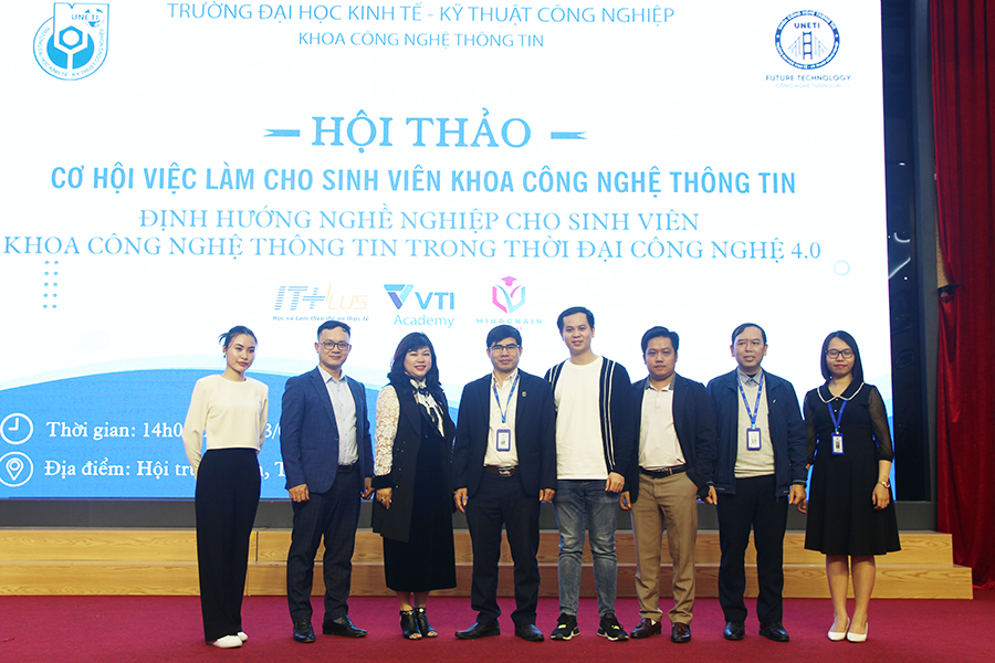 Với mục đích giúp sinh viên có những định hướng trong quá trình học tập và phát triển nghề nghiệp, được sự cho phép của BGH Trường Đại Học Kinh Tế Kỹ Thuật Công Nghiệp, 14h00, ngày 03/03/2023 Khoa Công nghệ thông tin - Trường Đại Học Kinh Tế Kỹ Thuật Công Nghiệp đã tổ chức thành công hội thảo “Cơ hội việc làm cho sinh viên Khoa Công nghệ thông tin, Chủ đề: Định hướng nghề nghiệp cho sinh viên Khoa Công nghệ thông tin trong thời đại công nghệ 4.0”