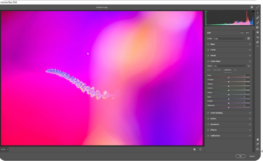 Adobe Camera Raw là một loạt thanh trượt và tab được sử dụng để xử lý các tệp RAW. Ưu điểm của tệp RAW là bạn có thể thực hiện thay đổi và không bị phá hủy tệp gốc có nghĩa là khi lưu tệp nó sẽ xuất sang một tệp mới mà không bị ảnh hưởng tệp gốc. Camera Raw là một tiện ích bổ sung (Plug-in) của Adobe Photoshop, nhưng hầu hết mọi người thậm chí lại không biết nó có tồn tại. Camera Raw loại bỏ đến 90% các nút bấm và chức năng của Photoshop, cho phép bạn thực hành thao tác các ứng dụng cơ bản nhất và dễ dàng chỉnh sửa màu của bức ảnh.
