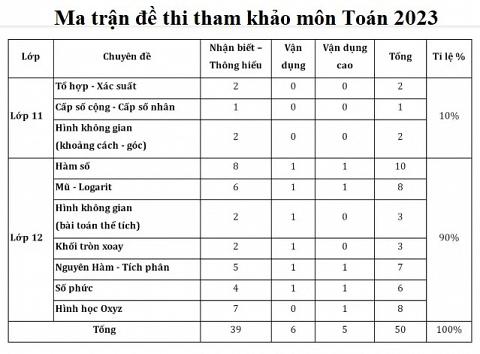 Tỷ lệ câu hỏi lí thuyết /thực hành là 52,5%/47,5%. Đề thi tham khảo có cấu trúc và độ khó tương đương với đề thi tốt nghiệp năm 2022. Tỷ lệ câu hỏi nhận biết, thông hiểu/vận dụng và vận dụng cao là 75% - 25%.