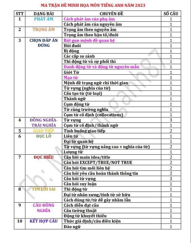Các câu ngữ pháp (từ 1 đến 10, 13, 17); viết lại câu (24, 26, 27); chữa lỗi sai (30, 31) là những câu dễ lấy điểm. Tương tự, trong bài đọc điền từ vào chỗ trống, câu 34 (đại từ quan hệ) và câu 37 (từ chỉ lượng) ở mức dễ, giúp học sinh gỡ điểm. Các câu phân hoá học sinh nằm ở câu về từ vựng như 19, 25; hai câu hỏi về thành ngữ (14, 25); câu đảo ngữ (33) và các câu hỏi suy luận, câu hỏi ý chính ở hai bài đọc hiểu.