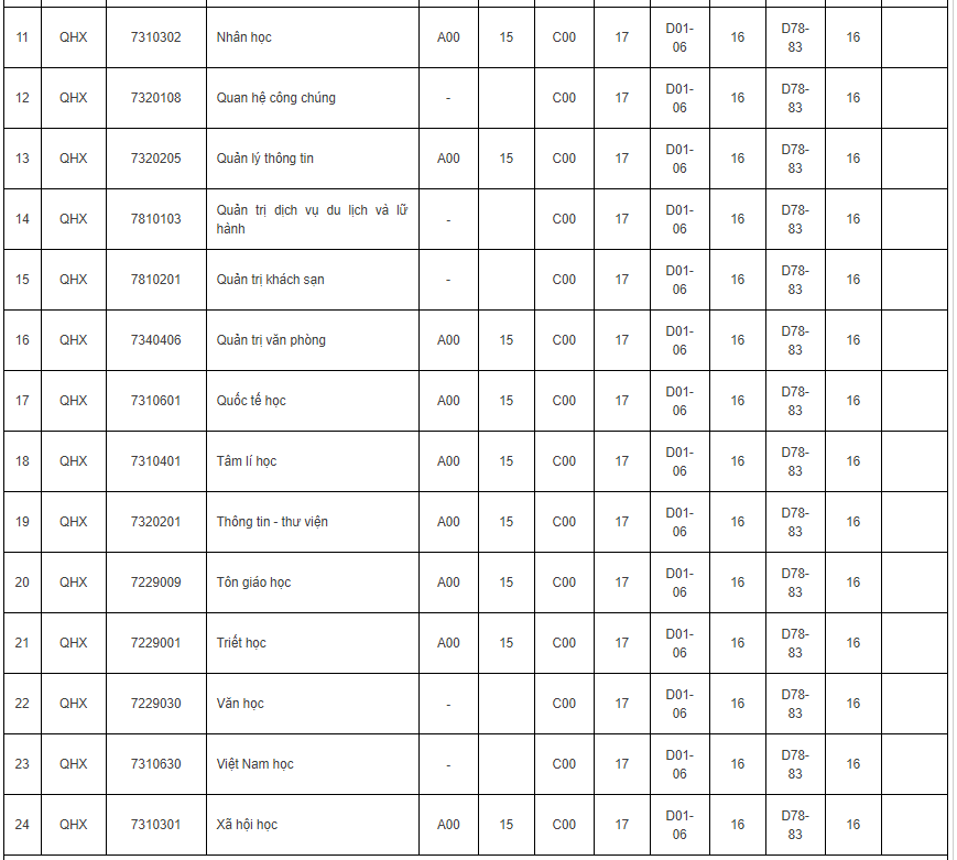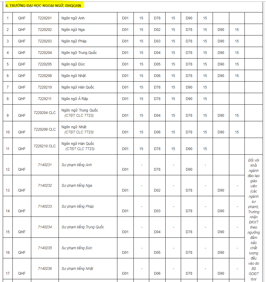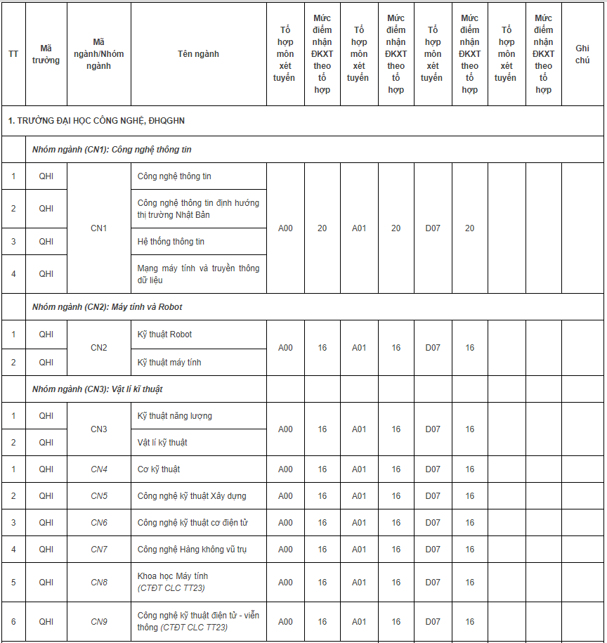 Ngưỡng điểm nhận hồ sơ xét tuyển, cụ thể như sau: