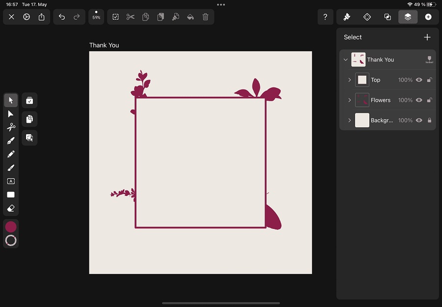 Như bạn có thể thấy trong các hình ảnh tham khảo từ Berenika, hình vuông bên trong nằm phía trên những bông hoa và con bướm được theo dõi trong hệ thống phân cấp lớp trong Tab Lớp.