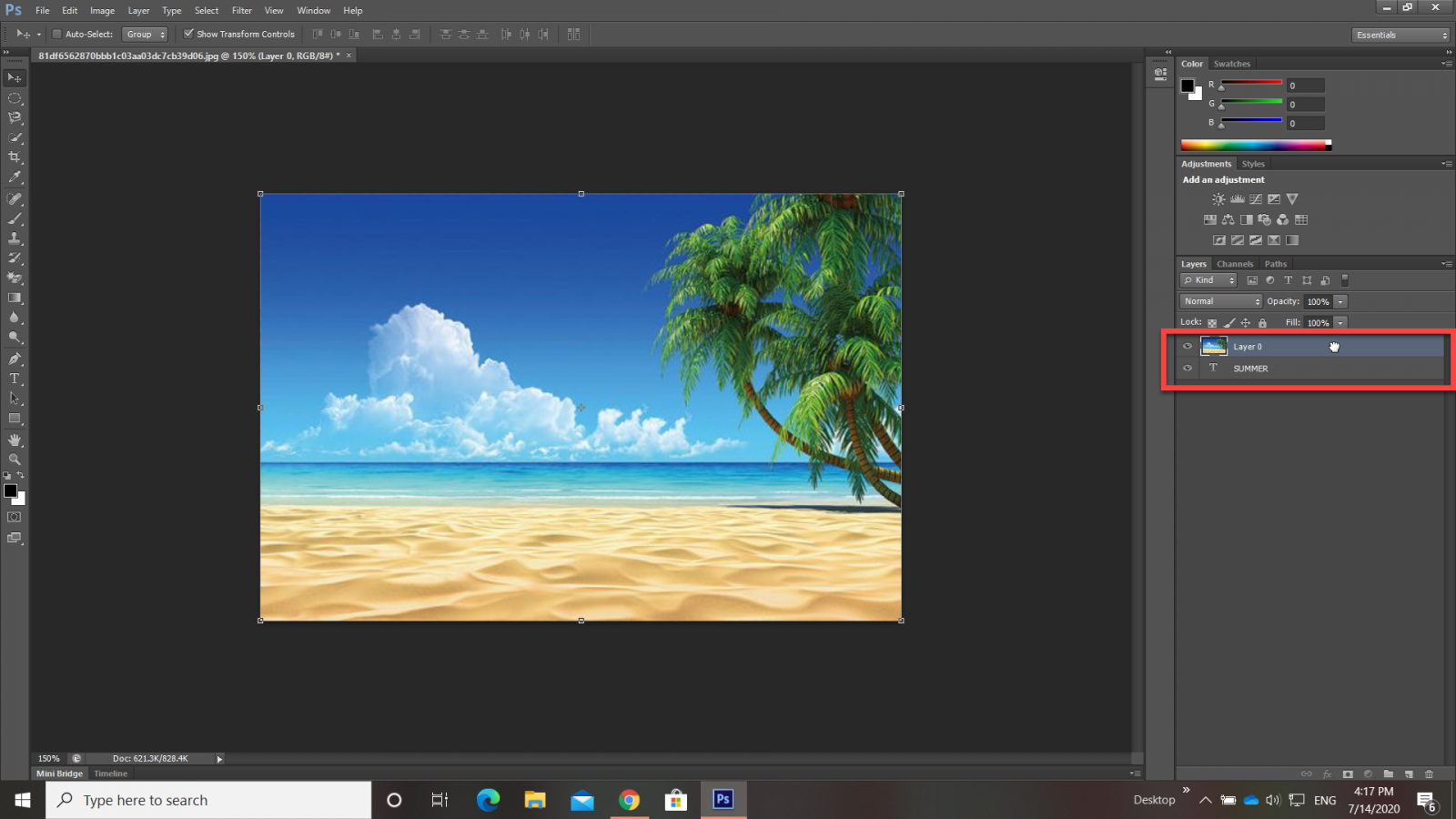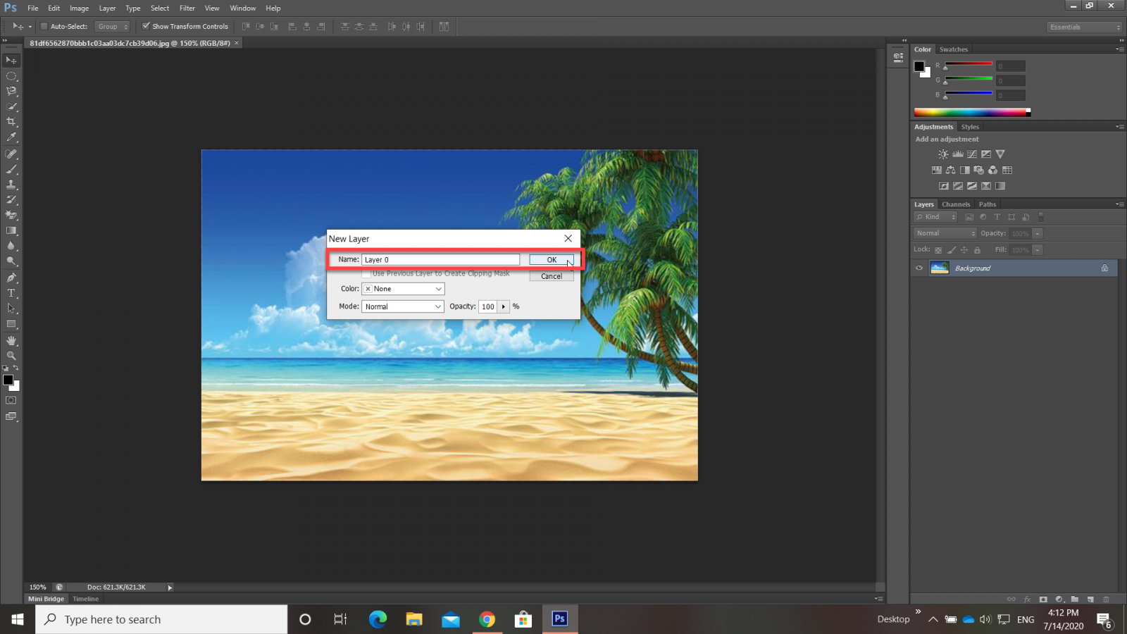 Ở bước tiếp theo, tại bảng hiển thị các layer, chúng ta cần thay đổi tên của lớp cơ sở trong nền bối cảnh. Hãy nhấn đúp vào tên “background” hoặc nhấn một lần vào biểu tượng khóa nằm phía bên phải. Theo mặc định ngay lập tức nó sẽ chuyển thành “Layer 0”