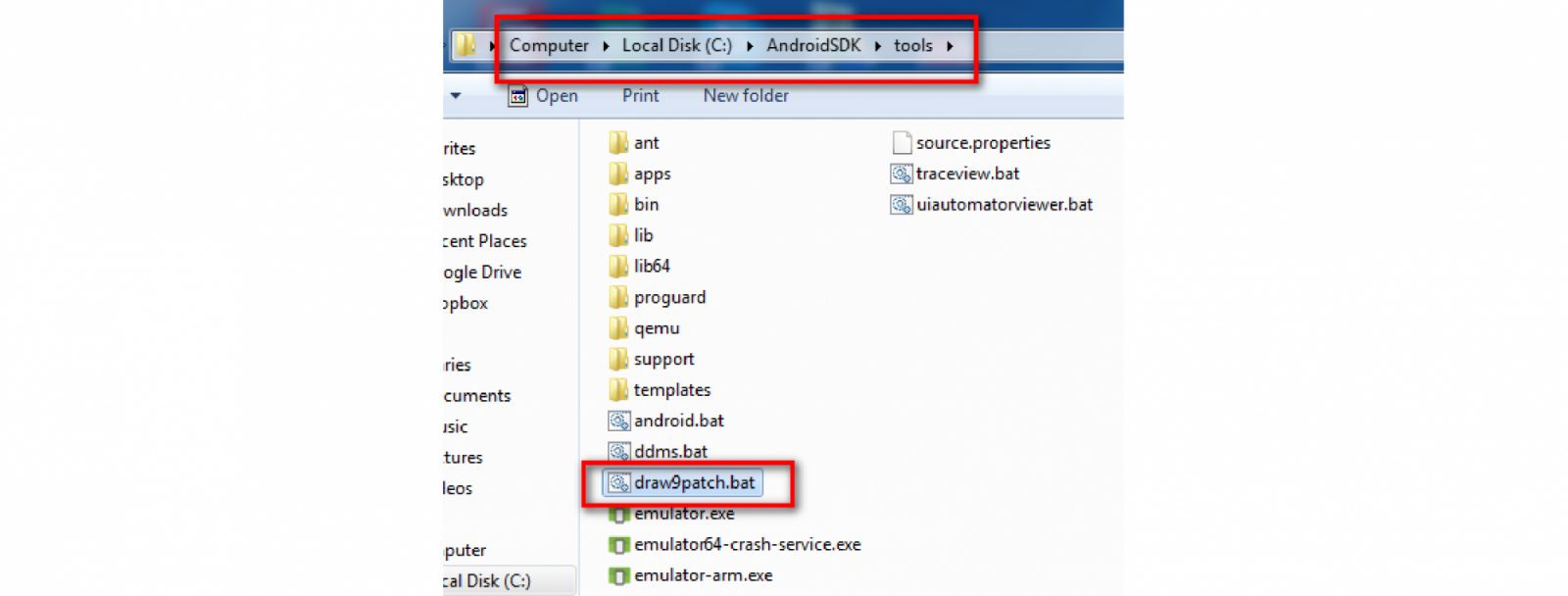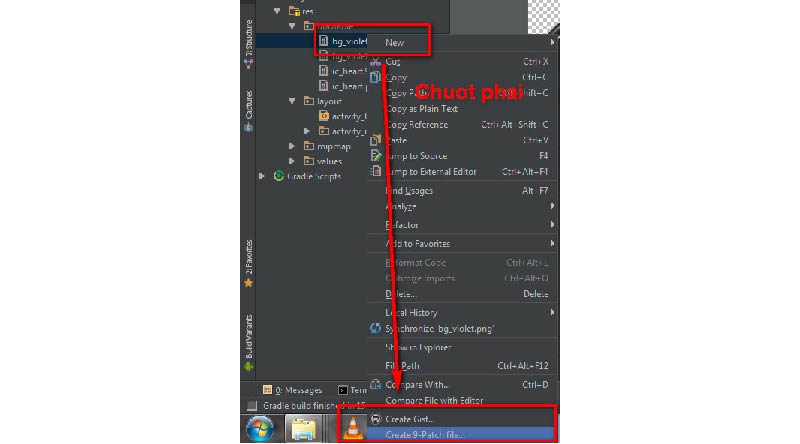 Với bộ SDK cũ, công cụ nine-patch đặt tại thư mục tools (Hình 8), với bản SDK mới đi kèm Android Studio thì đã được tích hợp sẵn (Hình 9).