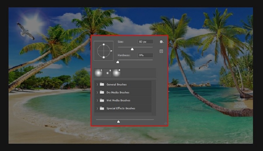 Bước 2: Nhấn chuột phải vào màn hình để thiết lập kích thước cỡ của vùng cần xóa ở mục Size, chọn Handess để chỉnh độ mờ của viền.