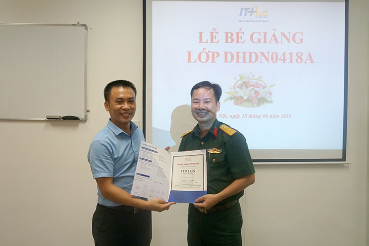 Lớp học Thiết kế đồ họa DHDN0418E4 được mở ra và hình thành dưới sự chỉ đạo và hợp tác giữa Học viện Hợp tác Đào tạo Công nghệ thông tin ITPlus và Nhà xuất bản Quân đội Nhân dân. Trải qua một quá trình đào tạo, đến nay khóa học đã hoàn thành và ngày hôm qua, ngày 19/6/2018, tại ITPlus Academy đã tổ chức buổi lễ bế giảng và trao chứng nhận cho các anh, chị học viên trong khóa học này.