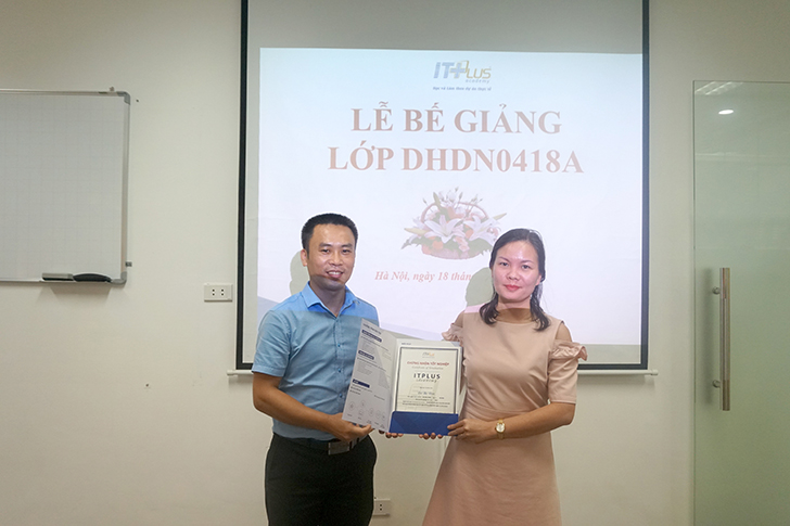 Đại diện ITPlus Academy trao giấy chứng nhận cho các anh/chị học viên