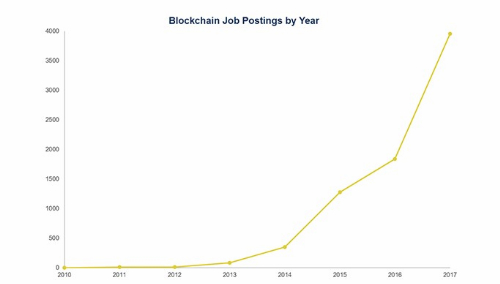 Thị trường việc làm Mỹ, châu Âu và trên thế giới đều đang săn tìm các nhà phát triển và kiến trúc sư trong lĩnh vực blockchain. Tuy nhiên, việc tìm kiếm chuyên gia không dễ dàng. Trong quý IV/2017, sự thiếu vắng các vị trí lập trình viên công nghệ blockchain vẫn tiếp tục, trong khi đó, sản phẩm về blockchain lại tăng gấp đôi.