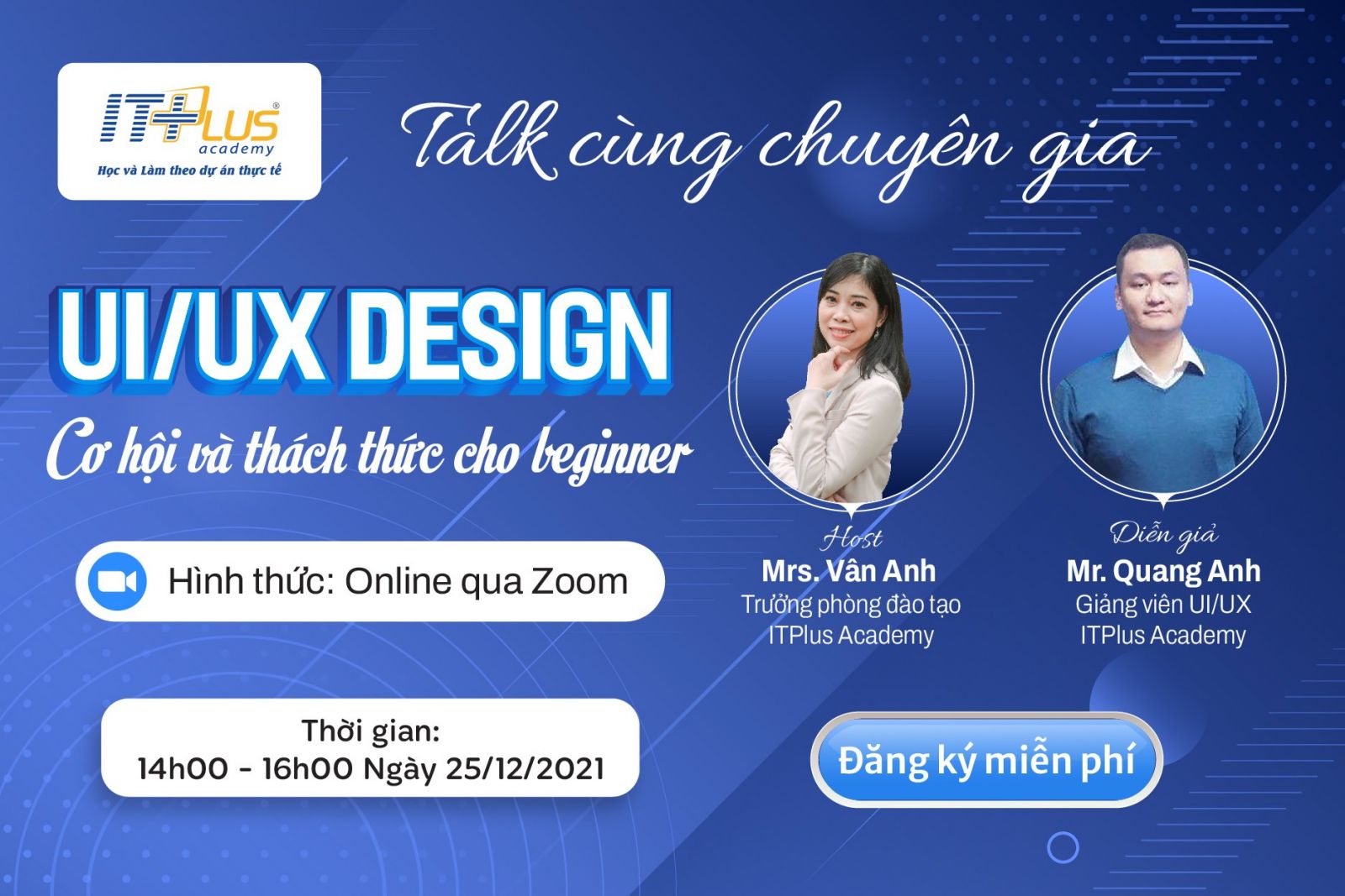 Gặp gỡ những chuyên gia hàng đầu của ITPlus Academy và cùng tìm hiểu về chủ đề “UI/ UX Design”, chương trình được tổ chức vào lúc 14h00 – 16h00 thứ Bảy ngày 25/12/2021 với hình thức Online trên ứng dụng Zoom.