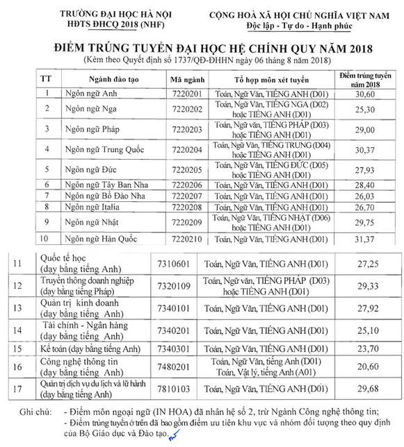 Điểm chuẩn Đại học Ngoại ngữ - Đại học Quốc gia Hà Nội