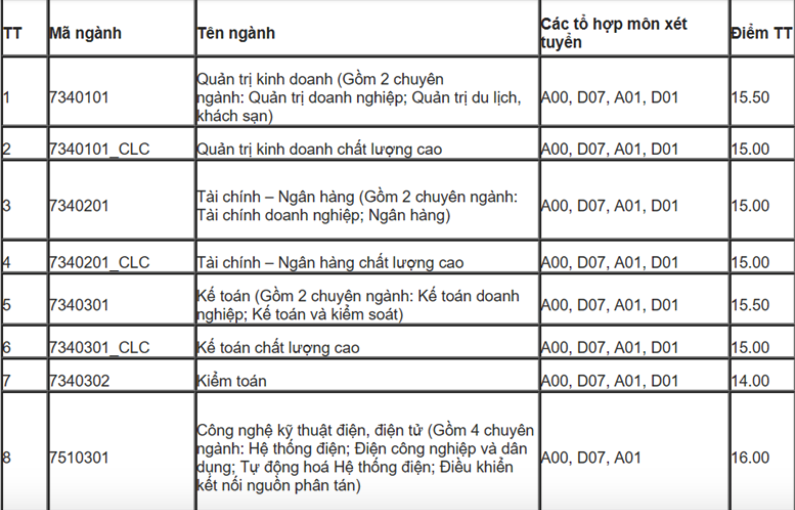 Điểm chuẩn Đại học Thương mại