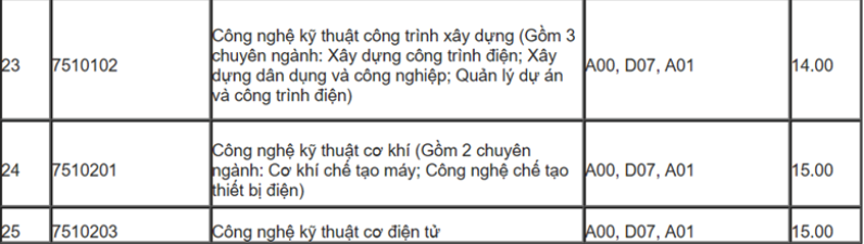 Điểm chuẩn Đại học Điện lực