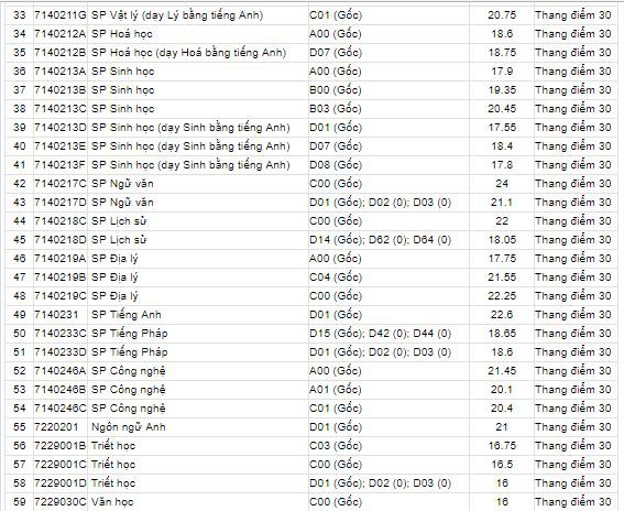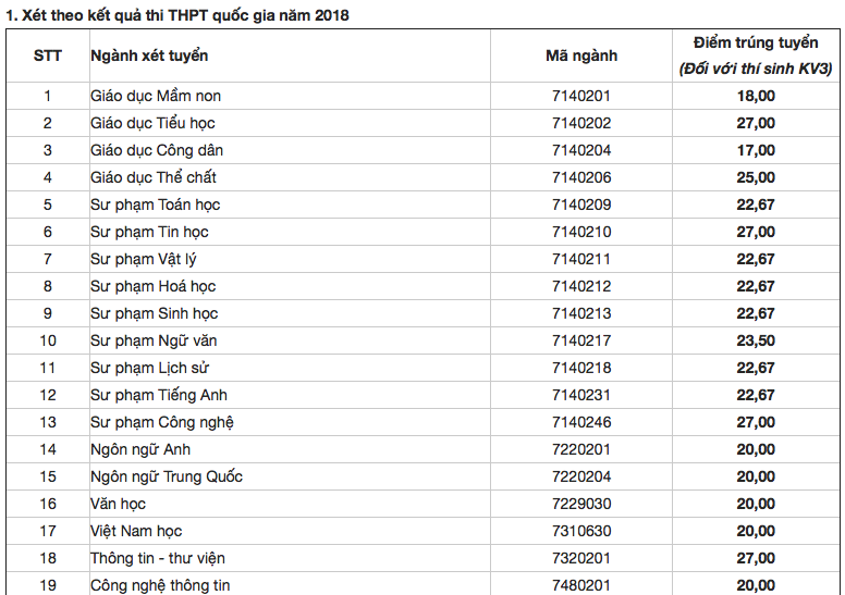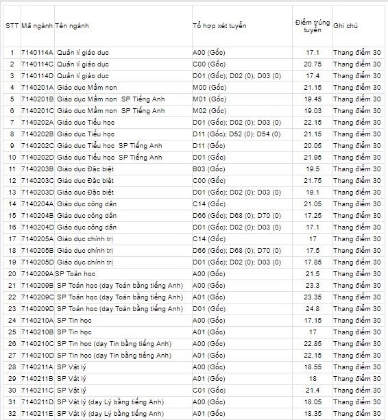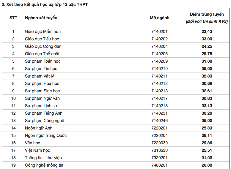Điểm chuẩn Đại học Sư phạm Hà Nội 2
