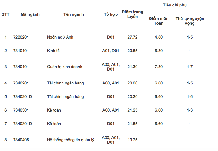 Điểm chuẩn Đại học Ngoại thương