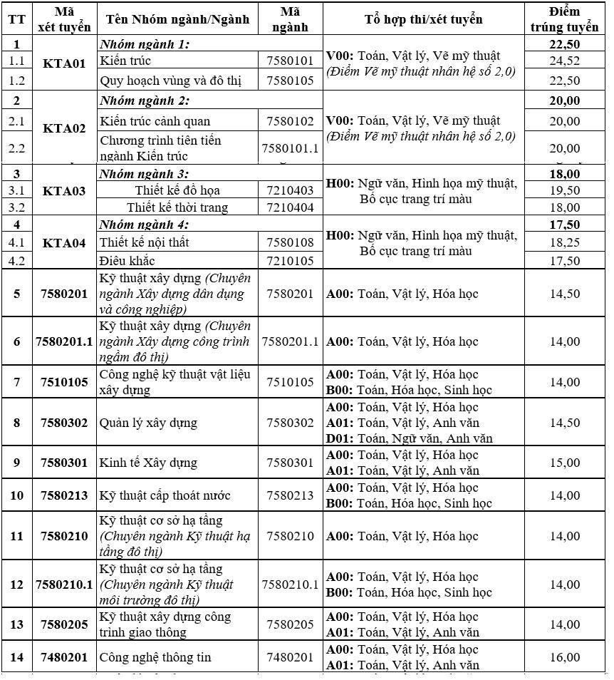 Điểm chuẩn Đại học Kiến trúc Hà Nội