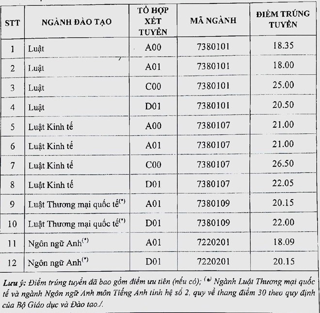Điểm chuẩn Đại học Luật Hà Nội