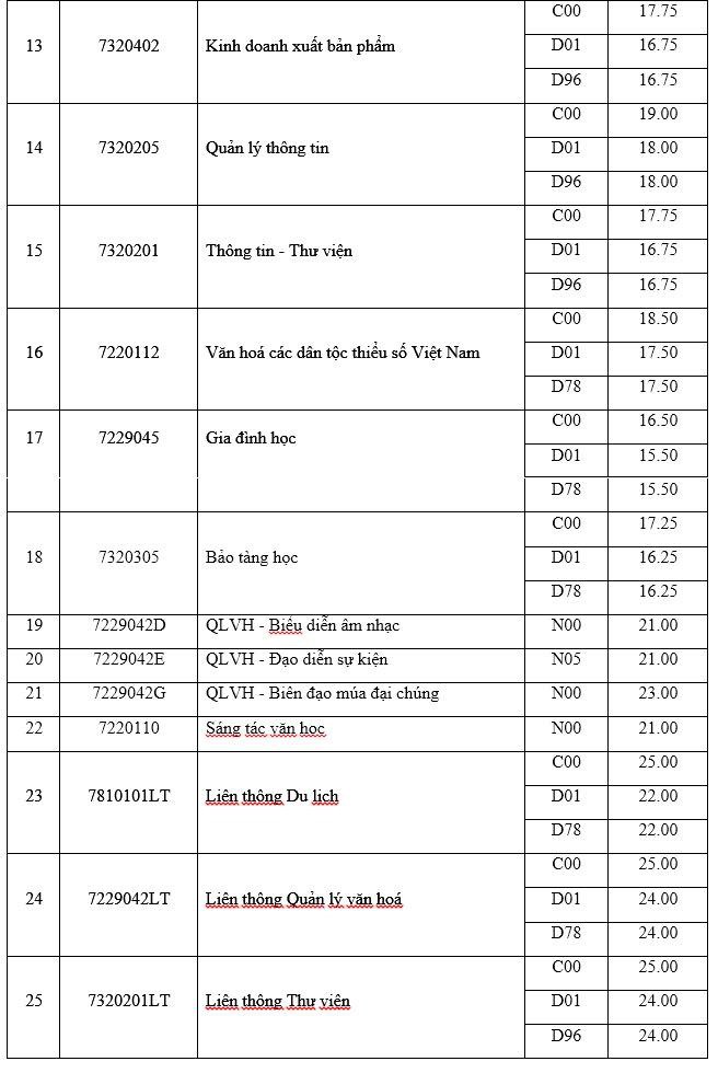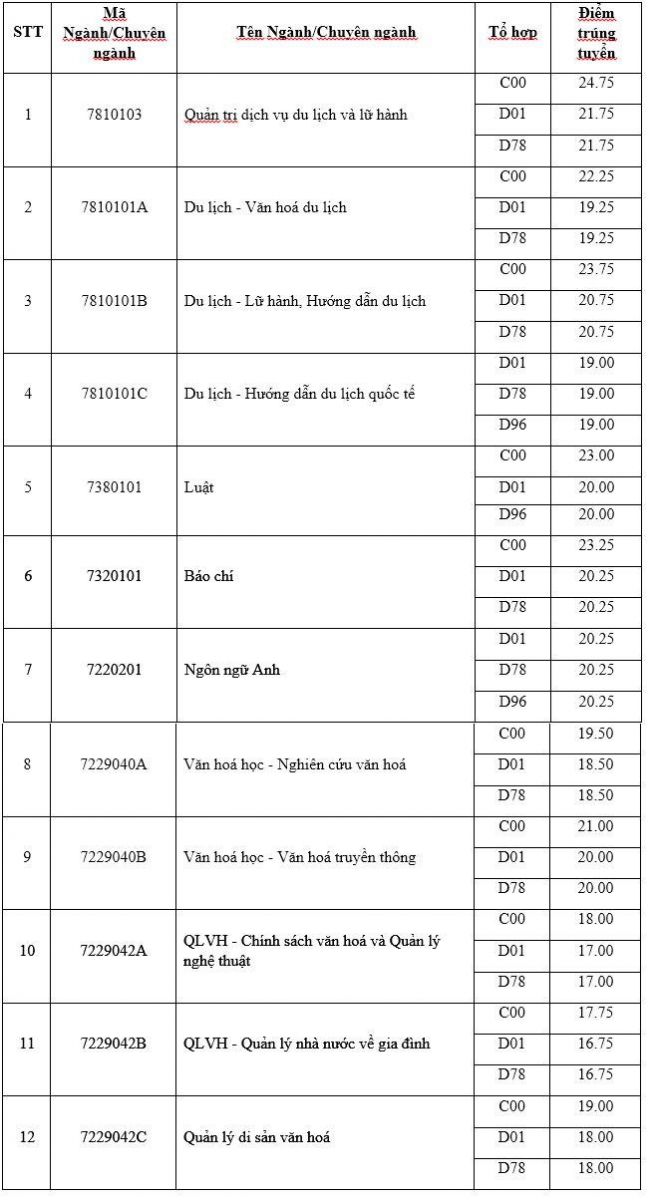 Điểm chuẩn Đại học Văn hóa Hà Nội