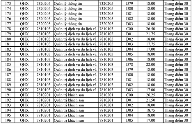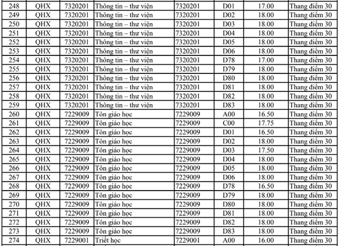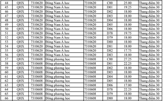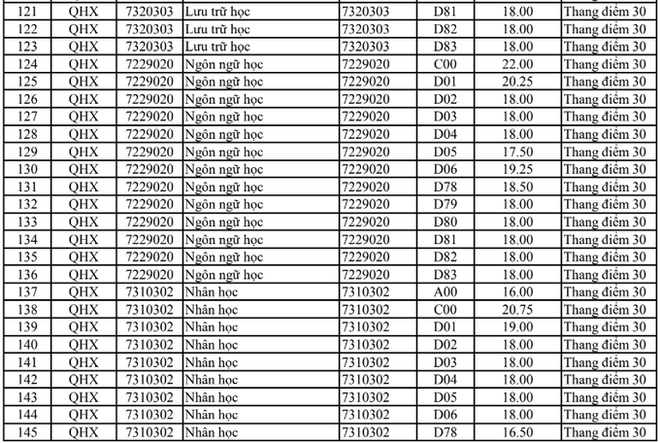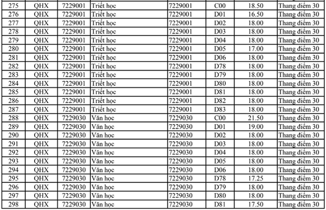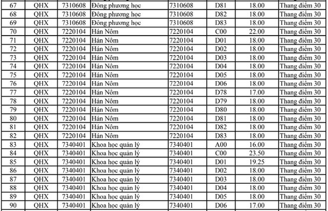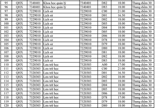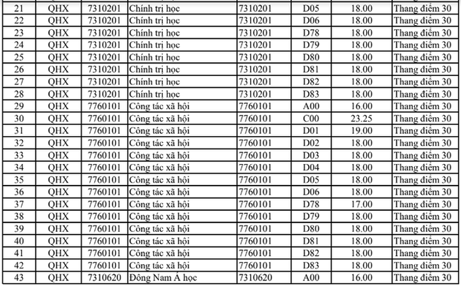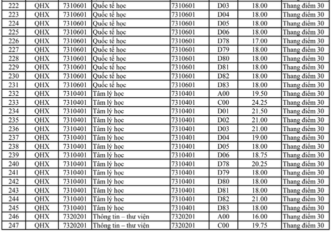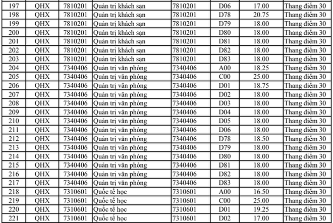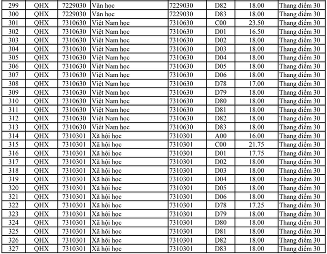 Điểm chuẩn Đại học Khoa học xã hội và Nhân văn Hà Nội