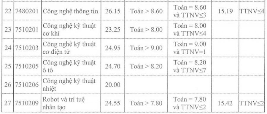 Ngành Công nghệ thông tin lấy điểm chuẩn năm 2022 là 24.55 điểm.