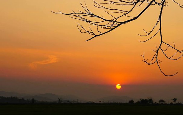 Mặt trời lên cao, tia nắng chỉ xuyên qua 1 tầng khí quyển mỏng tạo ra cảm giác chói loà. Còn khi mặt trời ở cuối đường chân trời thì ánh sáng phải vượt xa hơn qua lớp không khí dày đặc nên tạo cho mắt của ta hình ảnh có màu xanh rải rác đằng sau là những dãy màu vàng, cam. Ví dụ khi quan sát bóng vào giữa trưa thì ta sẽ thấy nó sắc nét hơn là khi quan sát nó lúc mặt trời đã nằm xa phía chân trời.