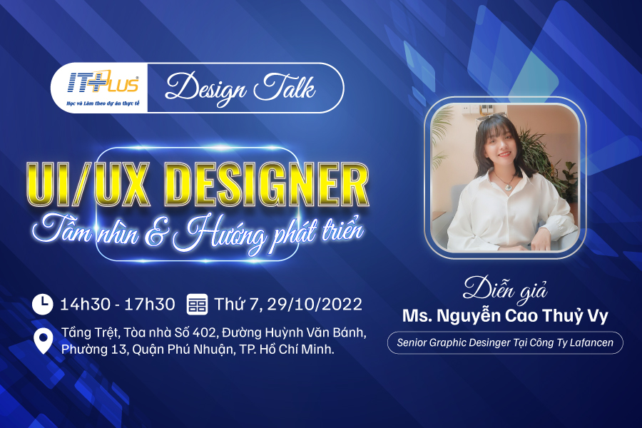 Ngày nay, khi công nghệ thông tin phát triển vượt trội, các ứng dụng phần mềm không chỉ yêu cầu đẹp mắt về giao diện (UI) mà còn phải thuận tiện cho người sử dụng và tối ưu các thao người dùng (UX). Lĩnh vực UI/ UX Design đang hot hơn bao giờ hết và yêu cầu lớn về số lượng cũng như chất lượng nhân sự. Là một đơn vị hàng đầu trong đào tạo “Lập Trình” và “Đồ Họa” tại Hà Nội và TP. HCM, ITPlus CN TP. HCM tổ chức buổi Hội thảo với chủ đề: “UI/UX Design – Tầm Nhìn và Hướng Phát Triển” vào lúc: 14h30 - 17h30 thứ Bảy ngày 29/10/2022. Chương trình có sự góp mặt của: