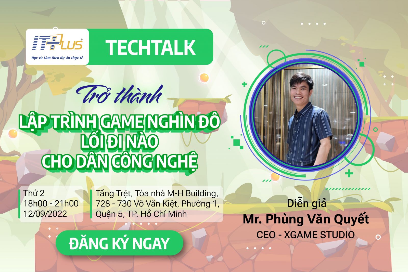 Nghề lập trình game, hay còn gọi là Game Developer, có phải chỉ cần “mê chơi game” là đủ? Thời gian gần đây, xu hướng các bạn trẻ lựa chọn ngành "Lập trình Game" có sự gia tăng đột biến, nhưng lối đi nào để các bạn biến ước mơ của mình thành hiện thực, tổng quan về thị trường lập trình game tại Việt Nam vào lúc này, cũng như những chia sẻ từ một start up điển hình trong làng "Lập trình Game"? Hãy cùng ITPlus. CN TP HCM đến với chương trình: Tech Talk "Trở thành lập trình game nghìn đô - Lối đi nào cho dân công nghệ" vào lúc: 18h00 - 21h00 thứ Hai ngày 12/09/2022 để tìm hiểu kỹ hơn về lĩnh vực vô cùng "hot" này nhé. Chương trình có sự góp mặt của Diễn giả: