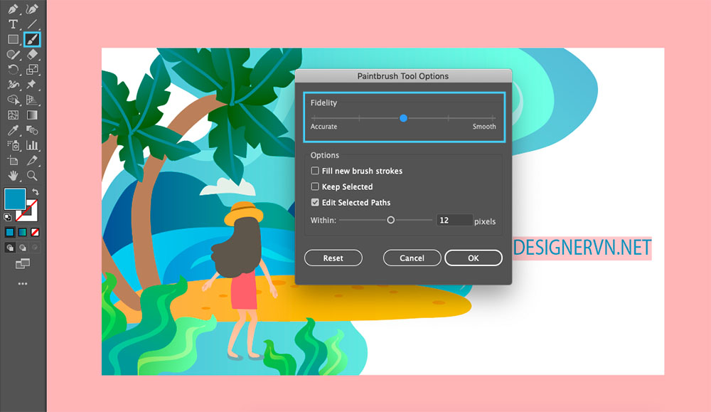 Với Paint Brush, các đường cong tự do sẽ được vẽ không chỉ rất dễ dàng mà còn vô cùng mịn màng, mềm mại. Cách thực hiện vô cùng đơn giản, nhấp đúp chuột vào công cụ Paint Brush, điều chỉnh giá trị “Fidelity Smooth” tăng giảm tuỳ theo mức độ mượt mà bạn mong muốn.